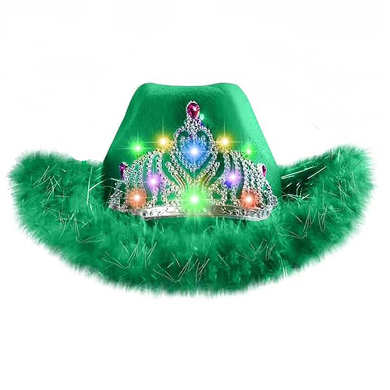 聖パトリックの日グリーンローエッジビッグクラウンカウボーイハットライトグリーンローエッジカラーダイヤモンドウエスタンカウボーイハット