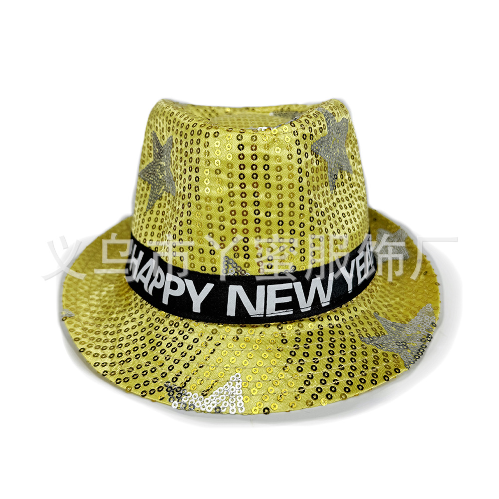 在庫あり ハッピーニューイヤー ハッピーニューイヤー ゴールデン五芒星 スパンコール ジャズハット スパンコールハット ジャズハット