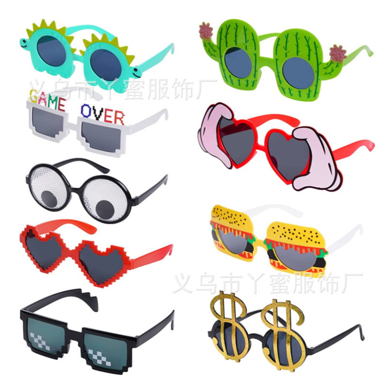 ハワイアンビーチひまわりメガネサマーパーティーワイングラス型メガネサボテンフラミンゴメガネ