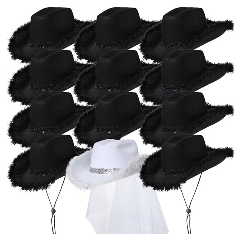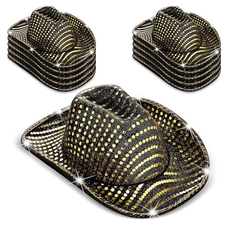 スポットブラックスパンコールカウボーイハット ライト付きブラックスパンコールハット ハロウィンスパンコールEVAカウボーイLEDハット