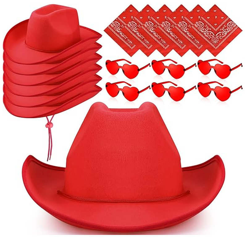 Amazon メーカー在庫あり ローズレッド カウボーイ ハット DIY ペイント ウエスタン カウボーイ ハット レッド バインディング フェルト ハット