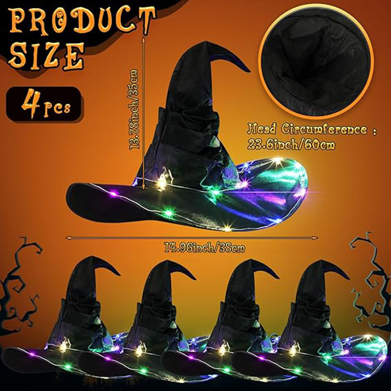 ハリーポッター シャーリング魔女帽子 LED ハロウィンパーティー魔女帽子 ライト付きブラックオックスフォード布魔女帽子