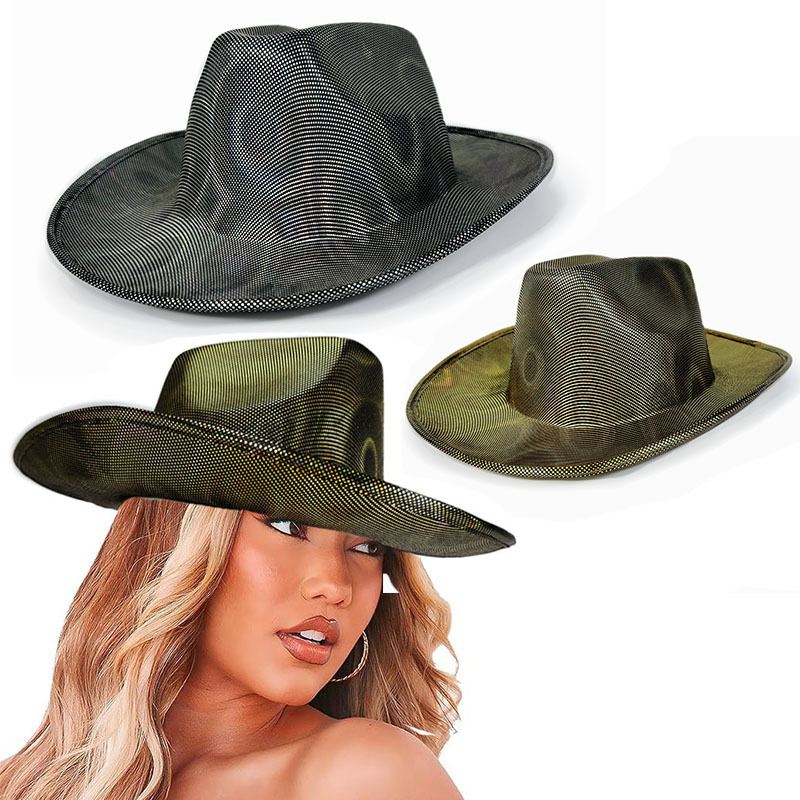 スポットレインボーカラーディスクカウボーイハットゴールデンドィスクカウボーイハットハロウィンカラフルなホットスタンピング布カウボーイハット