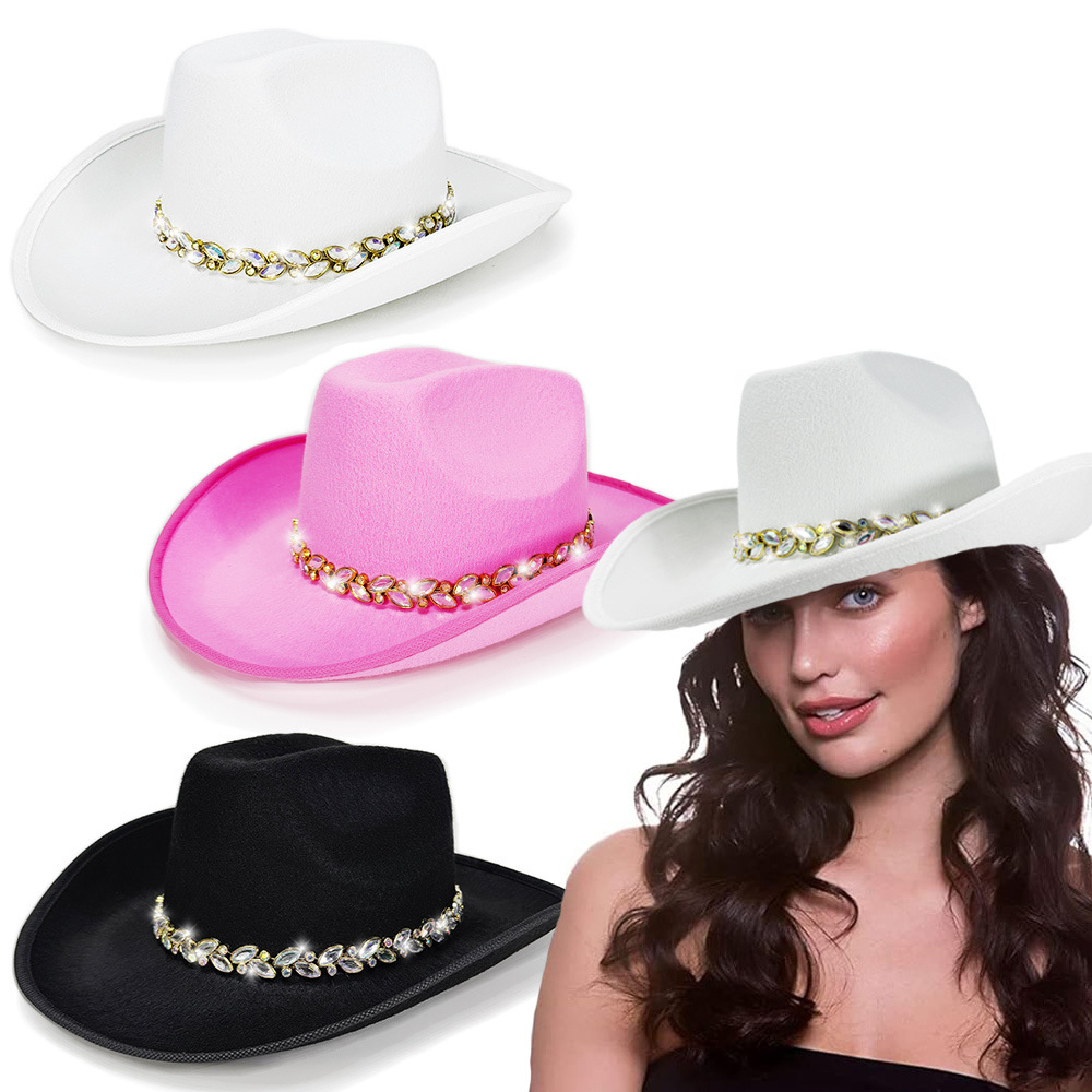 スポット新スタイルフェザーシルクウォータードロップダイヤモンドボーダースーパーフラッシュウエスタンカウボーイハットハロウィンカーニバルパーティー多色帽子