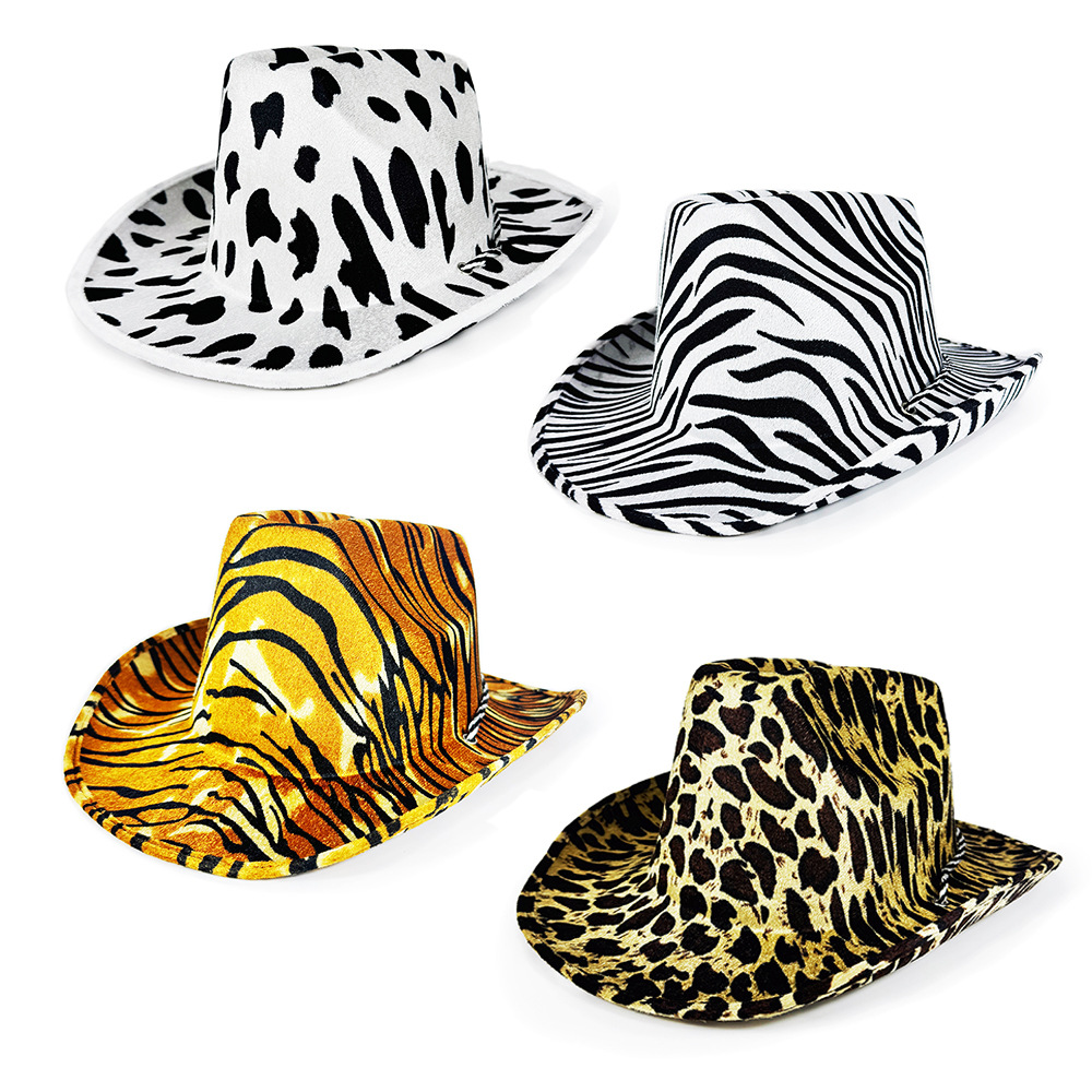 クロスボーダーのミルクのプリントの礼帽のシマウマの紋様の虎の紋様の西部のカウボーイの帽子の動物の紋様の舞踏会は両面の帽子を演じます。