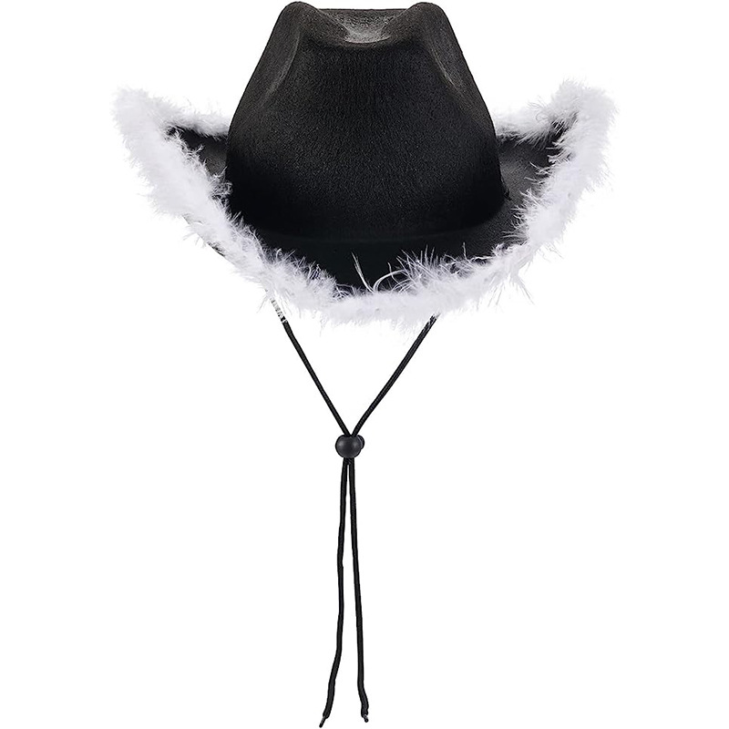 スポットブラックローエッジライト付きカウボーイハット、ブラックベルベットエッジハット、ブラックローエッジホワイトライトカウボーイハット、ライト付きウエスタンハット