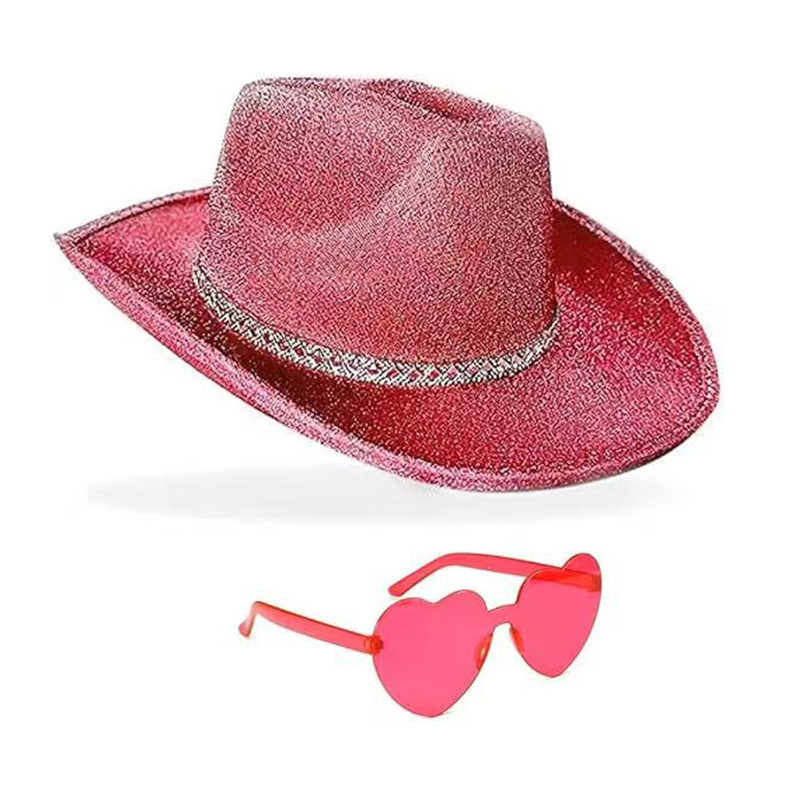 レッドグリッターカウボーイハットセットウエスタンカウボーイグリッターゴールドパウダーカウボーイハットEVAブラックシルバーコンパウンドゴールドパウダーハット