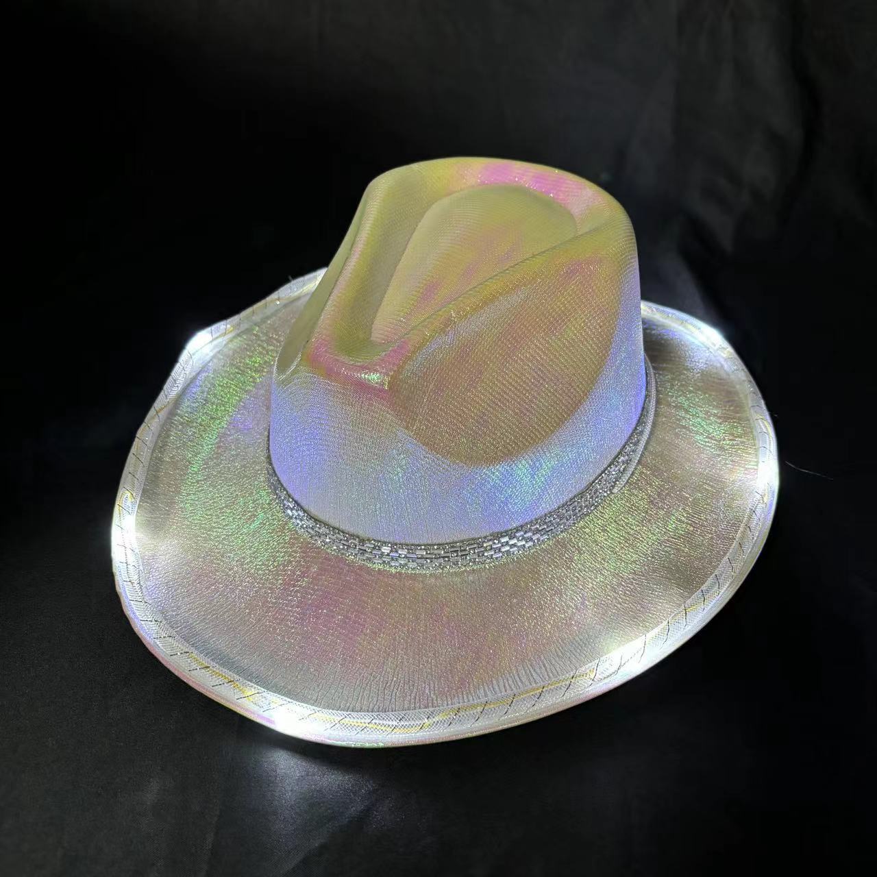 在庫あり ハロウィン ホワイト カラフル カウボーイ ハット ライト付き ウエスタン スタイル シンフォニー ピンク レーザー ハット