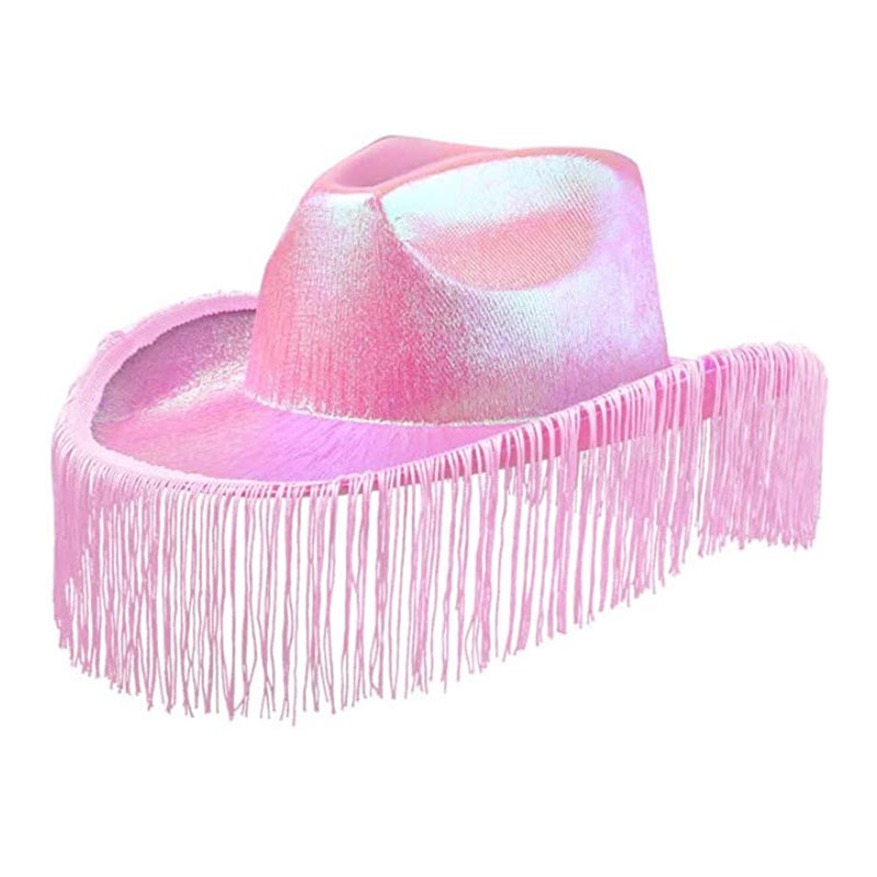 ハロウィンパーティーピンク真珠光沢タッセルカラフルなカウボーイハット複合レーザー帽子ウエスタンシンフォニーカウボーイハット
