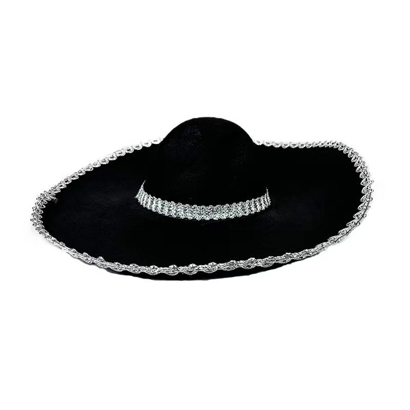 黒メキシコセクシーな大きなつばシルバーエッジハットハロウィンゾロハットメキシコ仮装メキシコハット