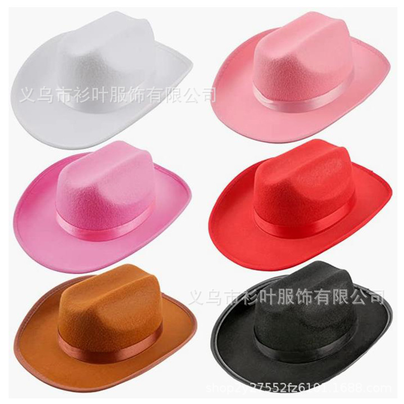 アマゾンパーティーピンク蛍光カラフルなカウボーイハットクラウン複合スタイリングハットウエスタンスタイルファンタジーカウボーイハット