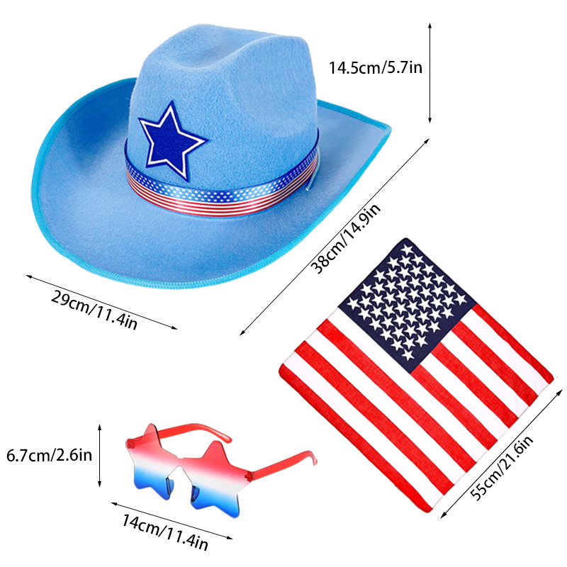 在庫あり アメリカ独立記念日 赤白青五芒星 カウボーイハット メガネ スクエアスカーフセット 独立記念日 カウボーイハット