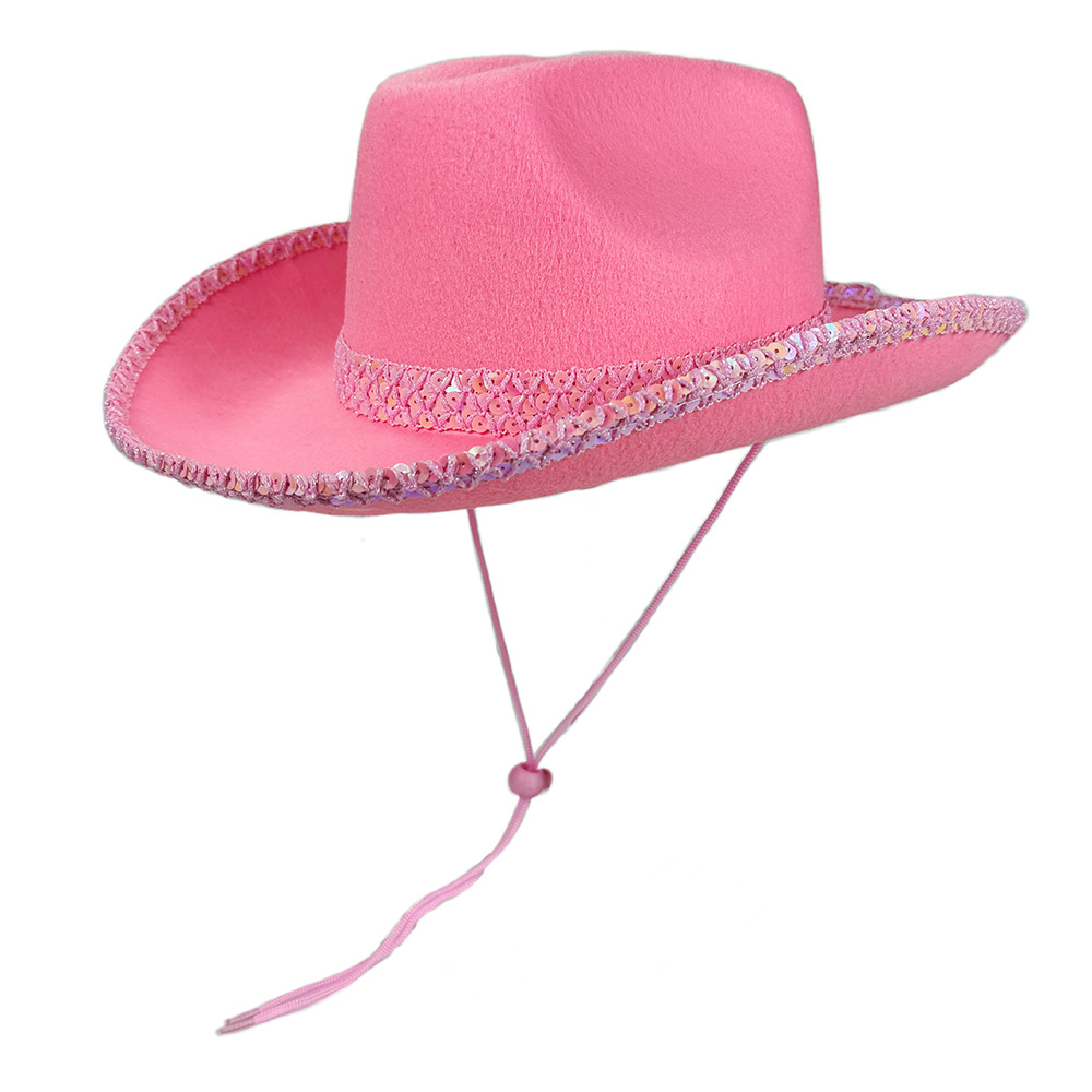 ピンクのダブルレーススパンコールカウボーイハット ピンクのウエスタンカウボーイハット フラワーリムシェイプハット スパンコールリムカウボーイハット