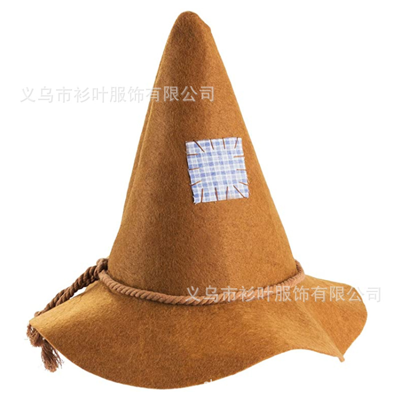 ハロウィンフェルトウィザードハットかかし麻縄茶色のフェルトハット黒魔女とんがり帽子麦わら帽子
