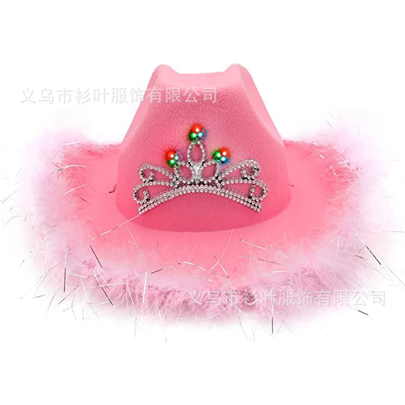 LEDライト付きフェザーエッジレターデニムハット フェザーエッジピンクウエスタンカウボーイハット カラーダイヤモンドライト付きピンクカウボーイ