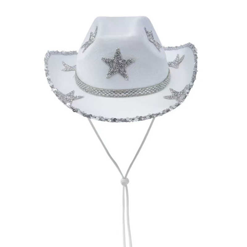 スポットホワイトカウボーイハットダイヤモンドモデル五芒星ダイヤモンドカウボーイハットウエスタンカウボーイホワイトフェルトシェイプハット