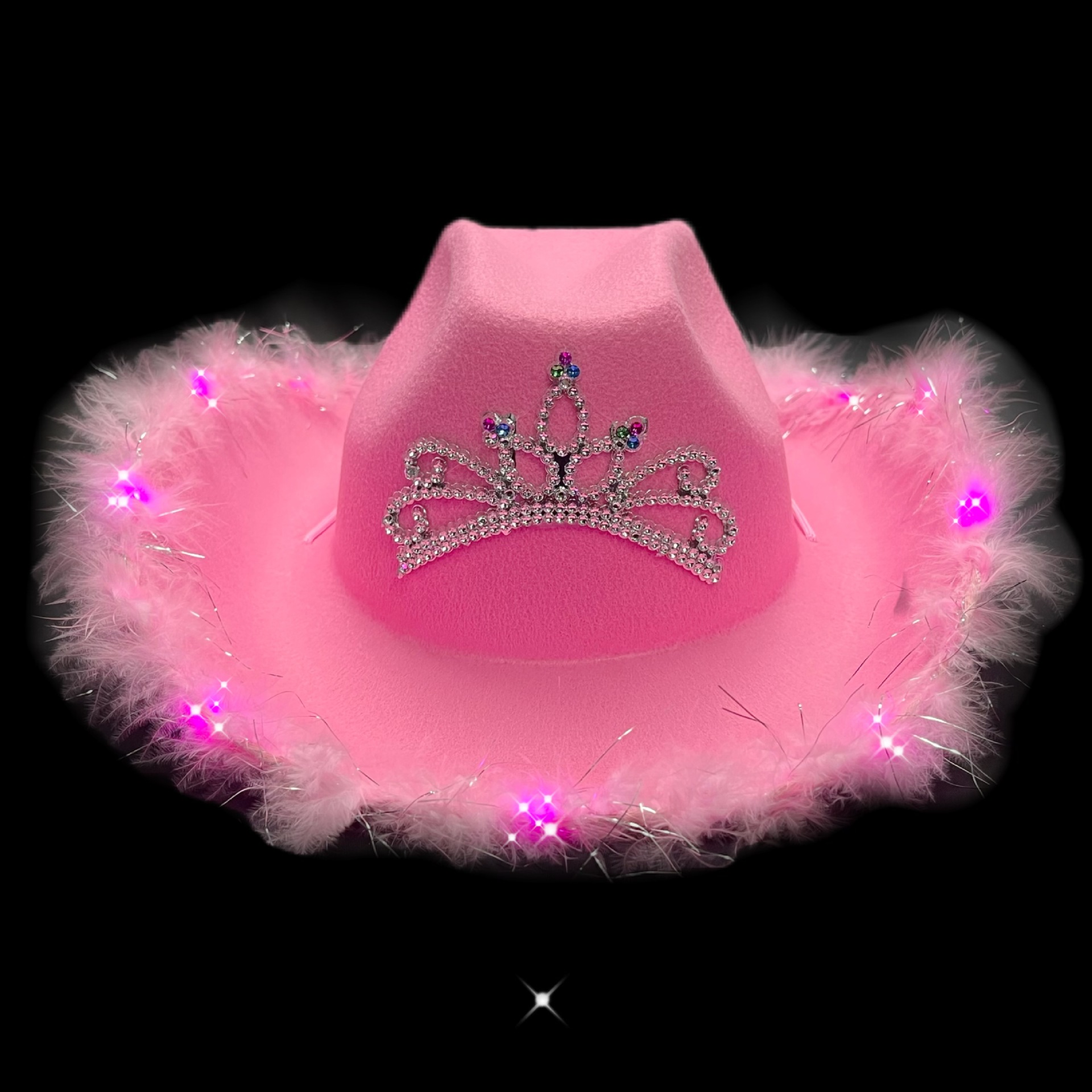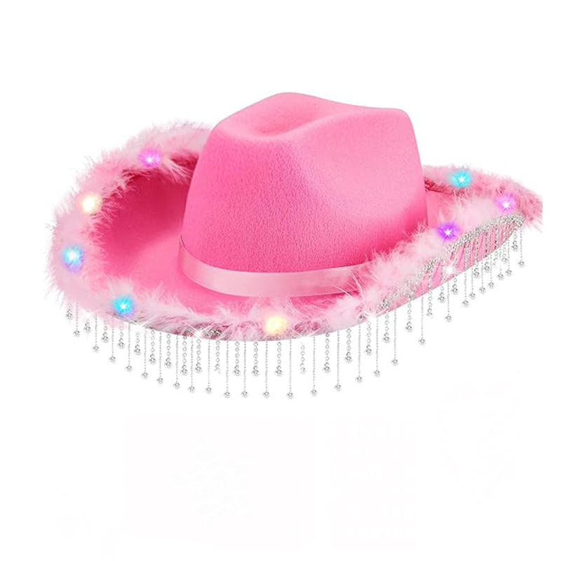 ライト付きピンクのローエッジクラウンカウボーイハット スパンコール付きウエスタンカウボーイハット カラーダイヤモンド付きライト付きピンククラウンカウボーイ