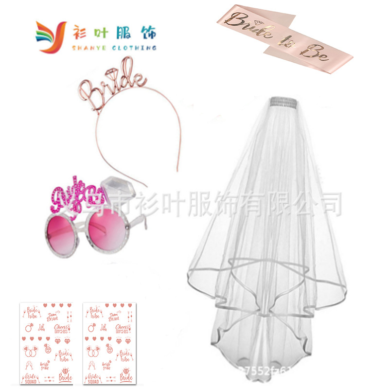 既製品の独身パーティー BRIDE TO BE 花嫁メガネセット ショルダーストラップ レッグサークル ベール メガネ ヘッドバンドセット