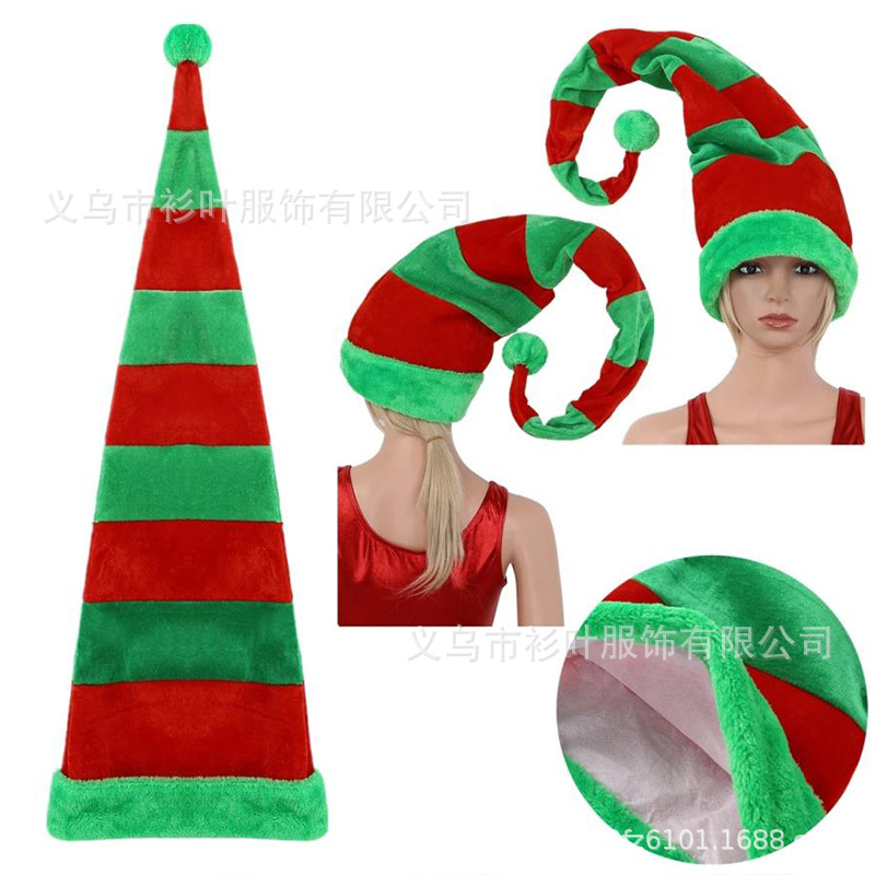 クリスマスエルフレッドロングストライプぬいぐるみ帽子クリスマスレッドグリーンストライプエルフ帽子コスプレエルフ帽子