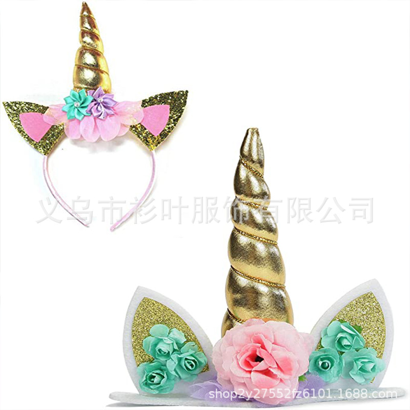 メーカー ヨーロッパとアメリカのユニコーン ヘッドバンド 誕生日女の子用生地ヘッドバンド ユニコーン ケーキインサート 在庫あり