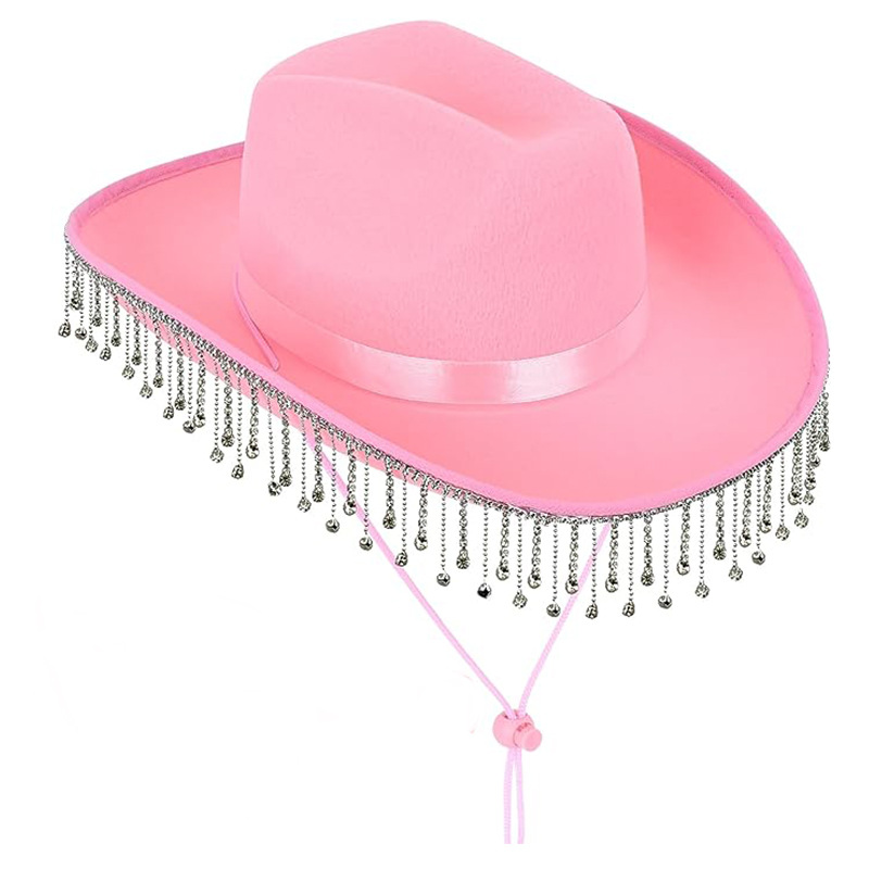ピンクのラインストーンタッセルカウボーイハットメーカー ウエスタンピンクのラインストーンカウボーイハット ダイヤモンドカウボーイハット