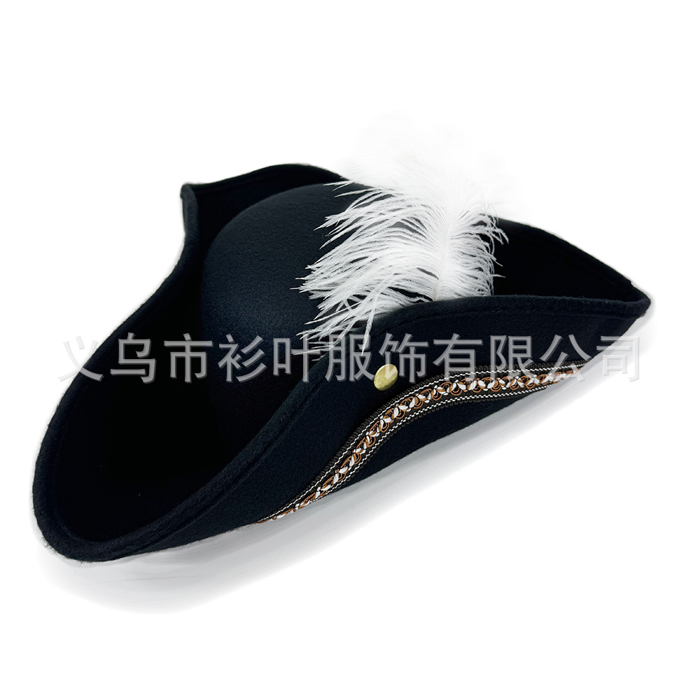 カリブ海の金縁の海賊帽子ハロウィンステージパフォーマンス片面ベルベットフェザー海賊帽子キャプテンハット