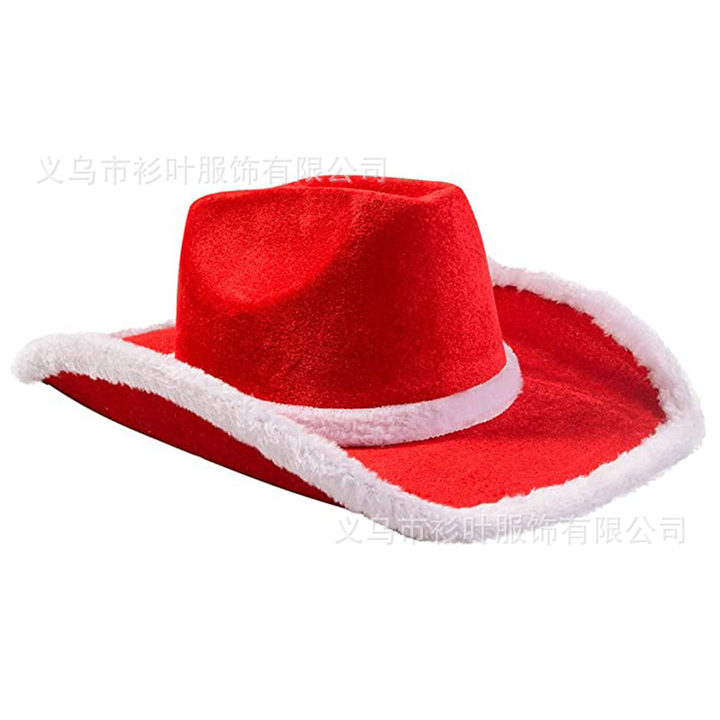 クリスマスファジーカウボーイハットレッドメーカー西部カウボーイハットサンタクロースファーリングハット複合カウボーイハット