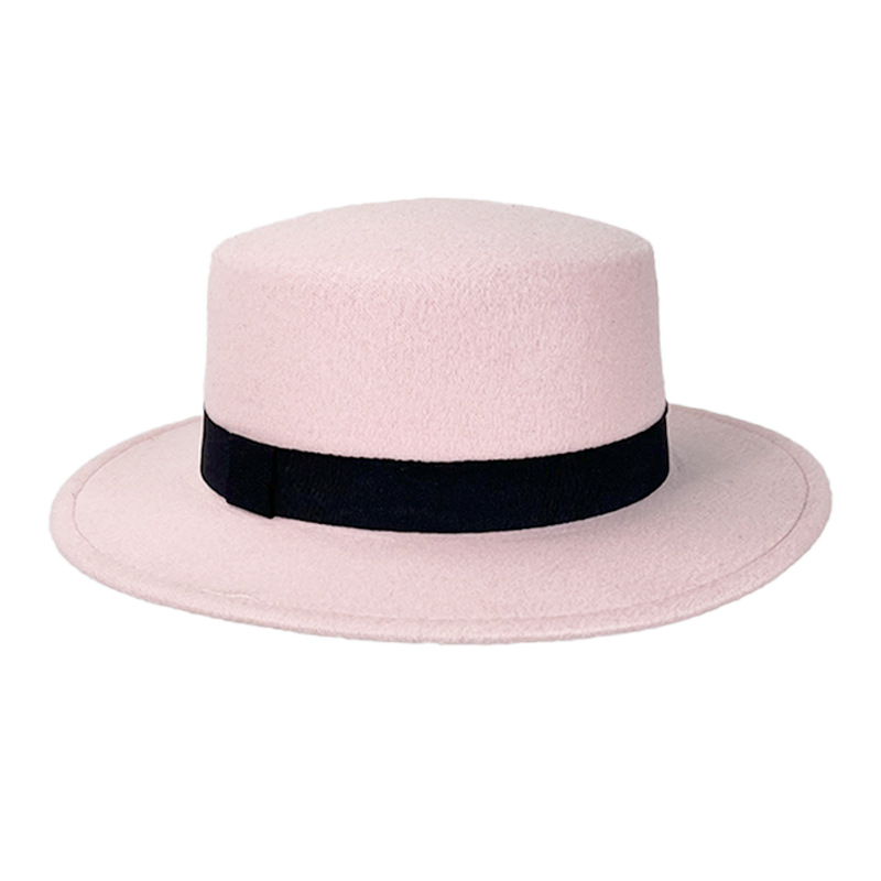 レトロな英国フラットハットピンクウールハットフラットつばシルクハットフェルトスタイリングハットトレンディな秋と冬のウールカウボーイハット