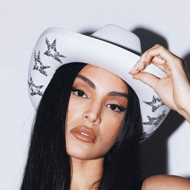 スポットホワイトカウボーイハットダイヤモンドスタイルディックカウボーイ五芒星ダイヤモンドハットウエスタンカウボーイフェルトシェイプハット