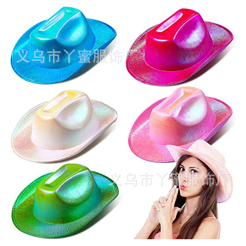ウエスタンシンフォニーカウボーイハットハロウィンカーニバルパーティーピンクカラフルな大きなつばスタイリングハット蛍光カウボーイハット