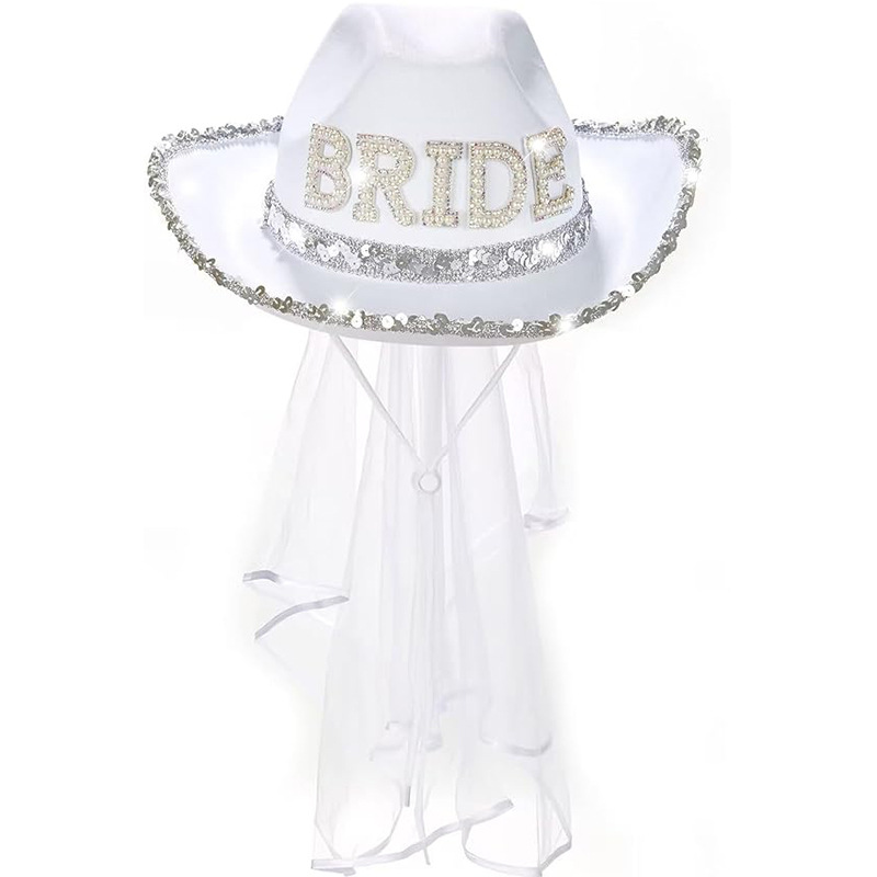Amazon ブライダルレター ベール カウボーイハット ウエスタンカウボーイハット BRIDE スパンコールベール カウボーイハット