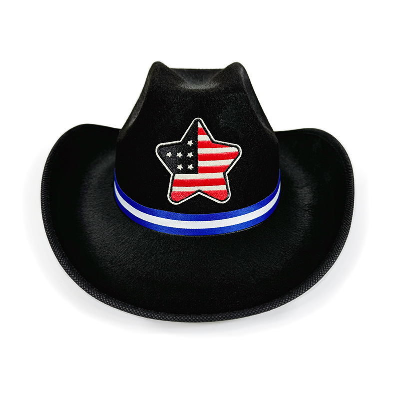在庫あり 独立記念日 青と白と青のリボン カウボーイハット レイブパーティー アメリカ国旗 五芒星 ウエスタンカウボーイハット