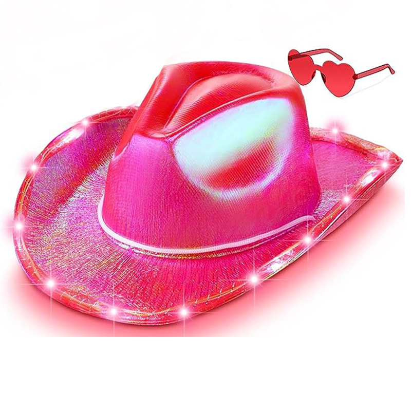 ライト付きクリスマスカラフルカウボーイハット、大きなつばの複合スタイリングハット、メガネセット、メガネカウボーイセット