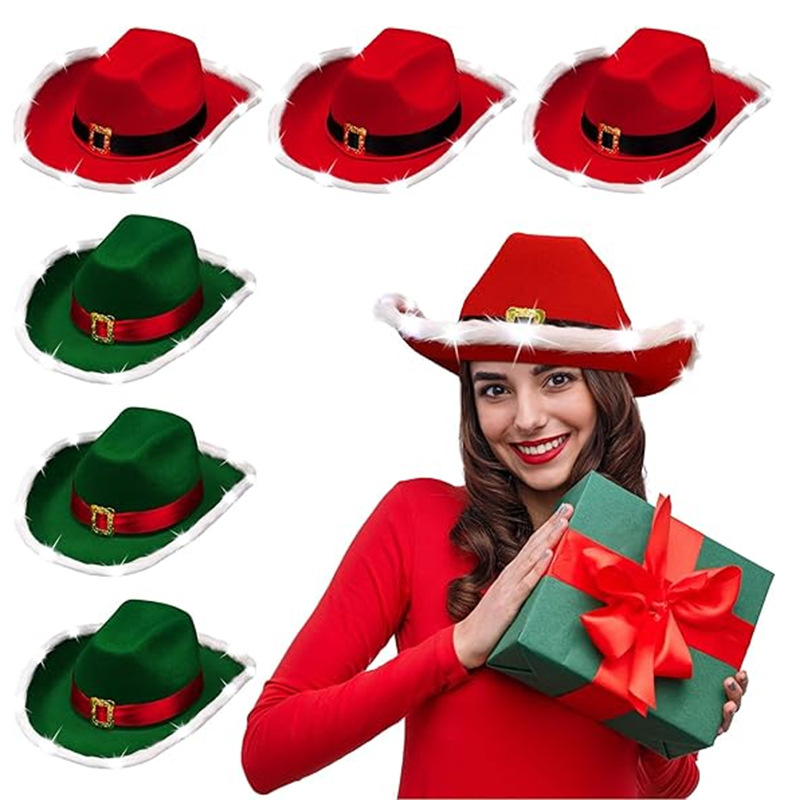 メーカー グリーン クリスマス エルフ カウボーイ ハット ホワイト ヘアエッジ ウエスタン カウボーイ ハット フェザー エッジ クリスマス カウボーイ ハット