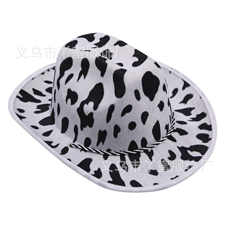 スポットミルクプリントカウボーイハット、牛柄スタイリングウエスタンカウボーイハット、両面ミルクロープバックルカウハット