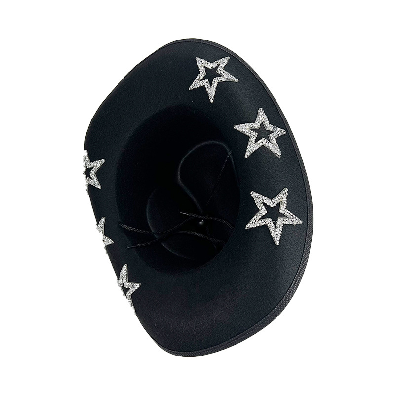 在庫あり Amazon ブラック ラインストーン ペンタグラム ダイヤモンド カウボーイ ハット ウエスタン ホワイト ダイヤモンド ペンタグラム カウボーイ ハット