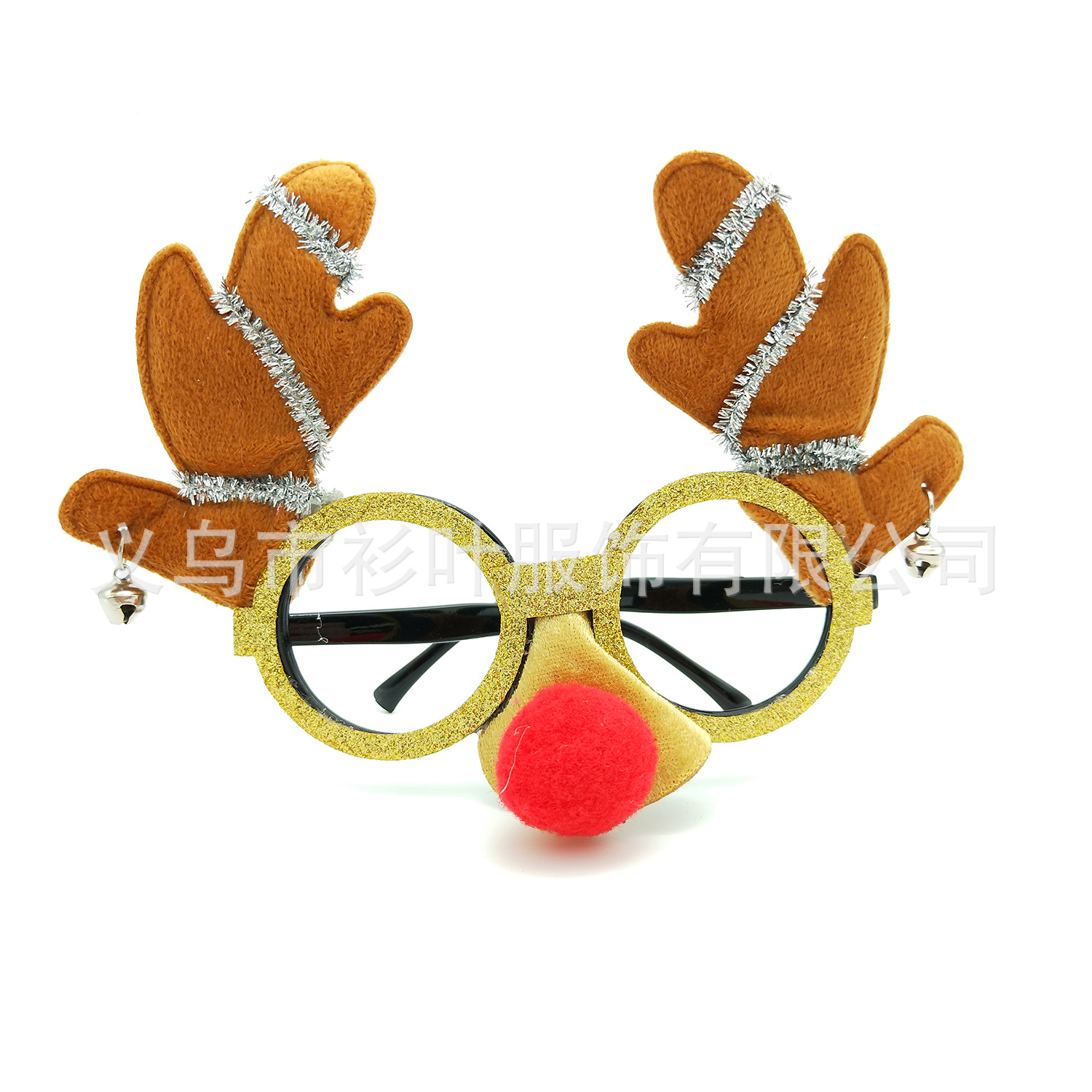 クリスマスパーティーメガネフレーム鹿の角メガネヘラジカの角フランネル赤い鼻メガネフレーム装飾