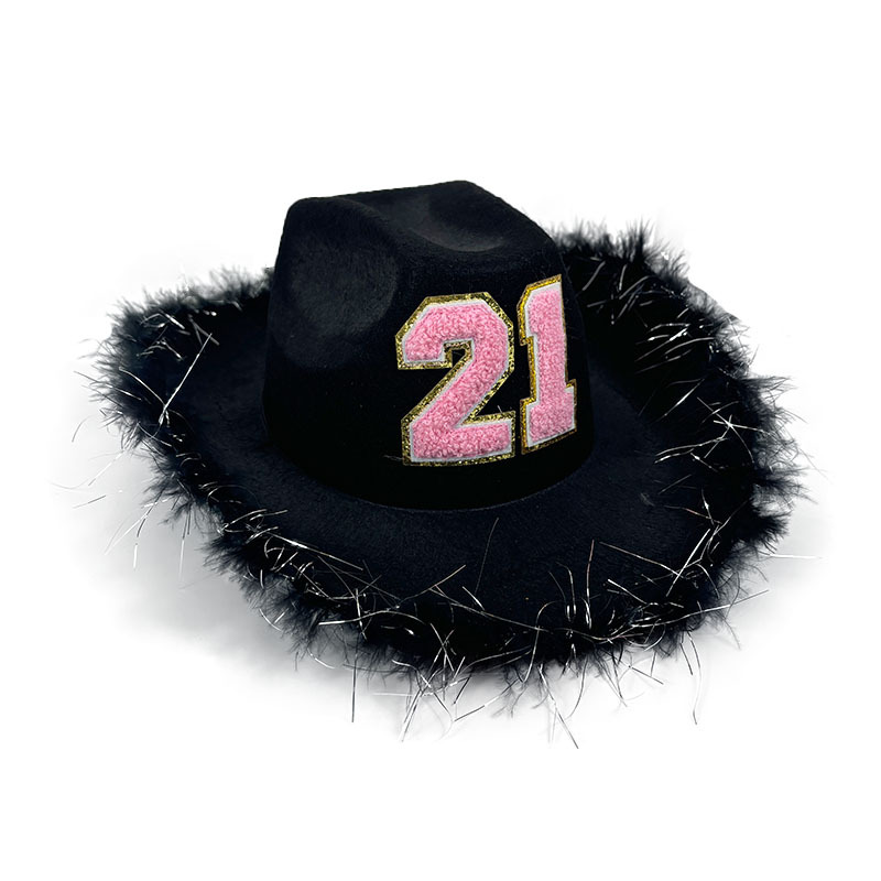ブラック カウボーイ ハット 21 歳の誕生日パーティー ブラック ベルベット エッジ デコレーション キャップ ブラック ローエッジ 誕生日パーティー カウボーイ