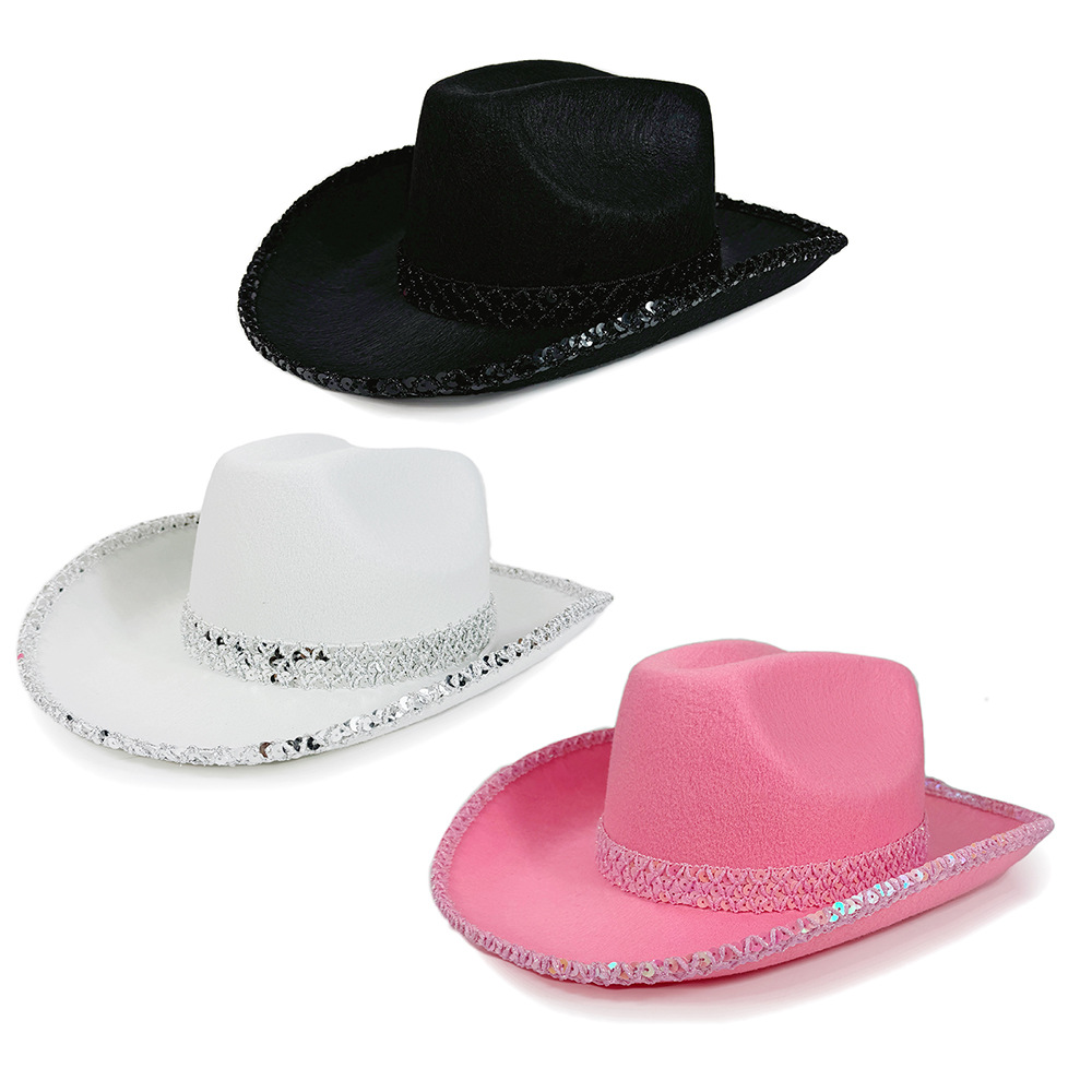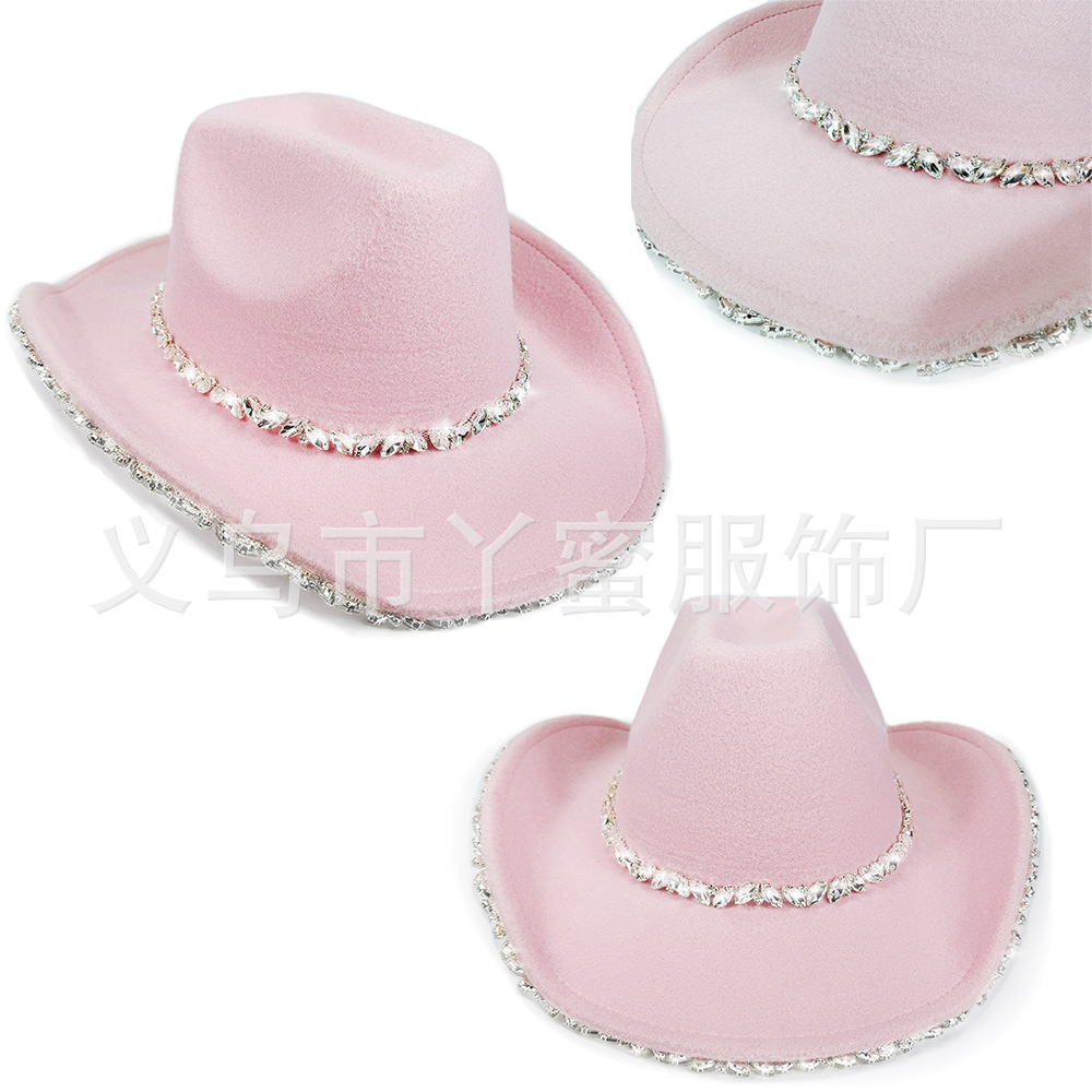 新しいスポットピンクシルバーエッジカウボーイハットハロウィンパーティーペアリングピンクシルバーエッジカウボーイハットスタイリングハット