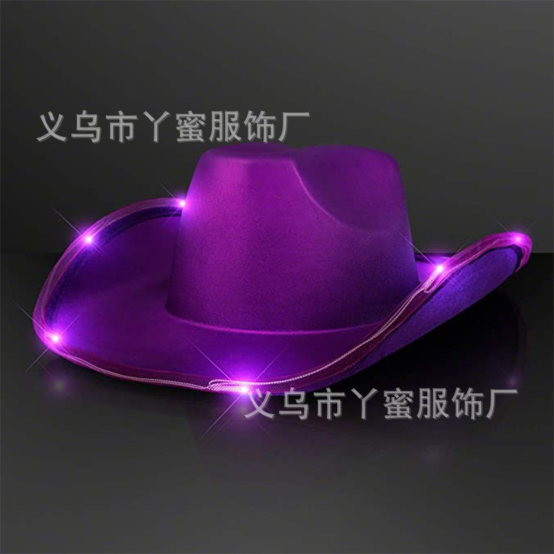 カーニバルパープルカウボーイハットライト付きカラフルな複合カウボーイハット大きなつばLEDライトパープルスタイリングハット