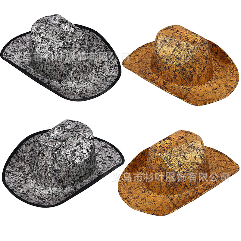 ハロウィン ゴールデン シルバー クラック カウボーイ ハット ゴールデン ウエスタン スタイル ブラック ライン フィラメント コンポジット EVA カウボーイ ハット