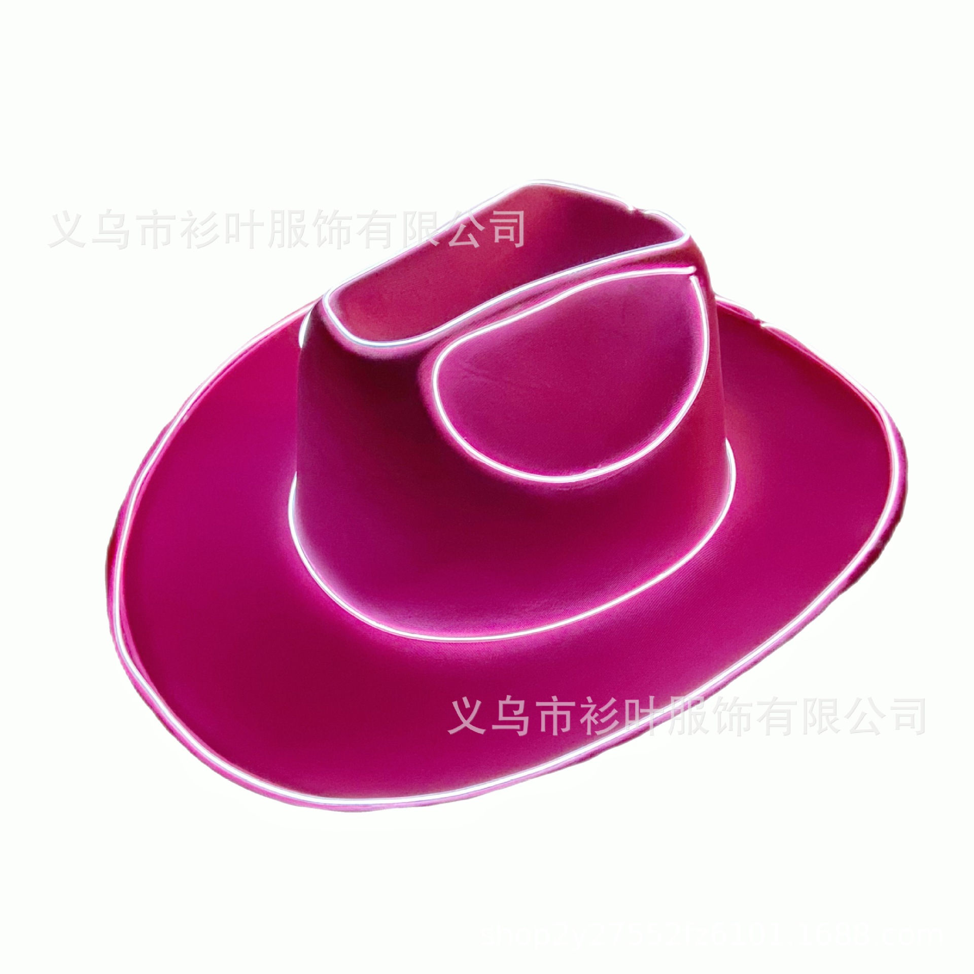 新しいハロウィンコールドライトピンクカウボーイハットピンクコールドライトカウボーイハットLED発光ラインカウボーイハット