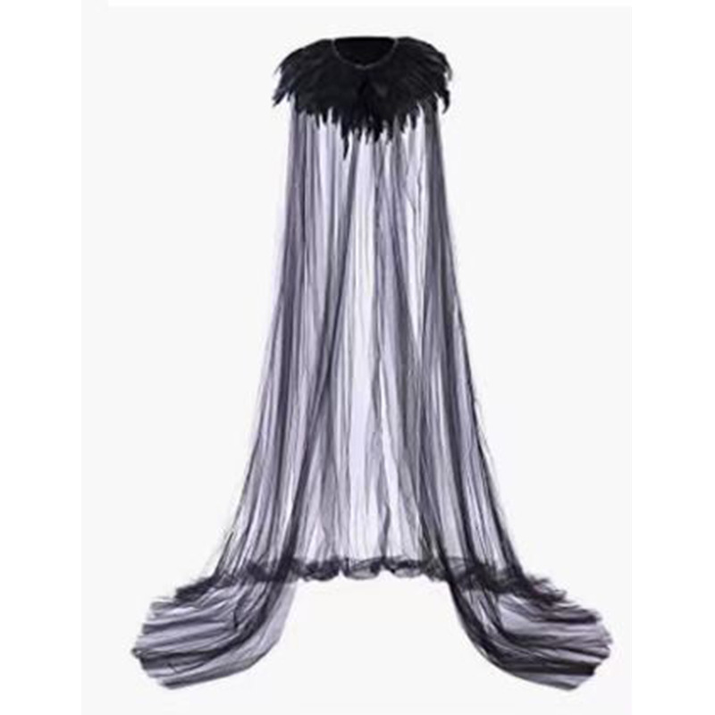魔女羽マントハロウィン羽マント黒毛皮の襟メッシュマントスカートステージパフォーマンス衣装