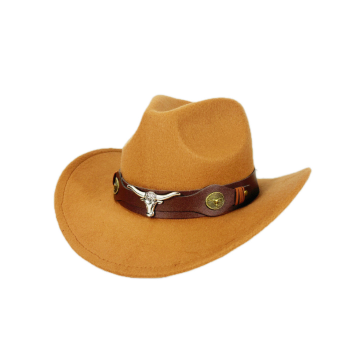 スポットカーキ牛革ベルトウールカウボーイハット春、夏、秋のアウトドア旅行ウールハット牛頭カウボーイハット