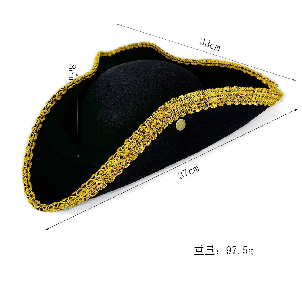 スポットカリブ海金縁海賊帽子ハロウィン不織布金縁海賊帽子三角帽子キャプテンジャック帽子