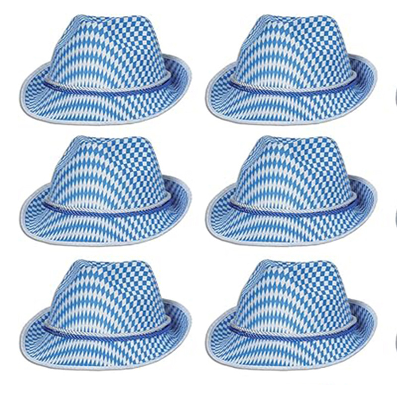 工場直販オクトーバーフェスト青と白のチェック柄ジャズハットドイツ仮面舞踏会ビールジャズハット