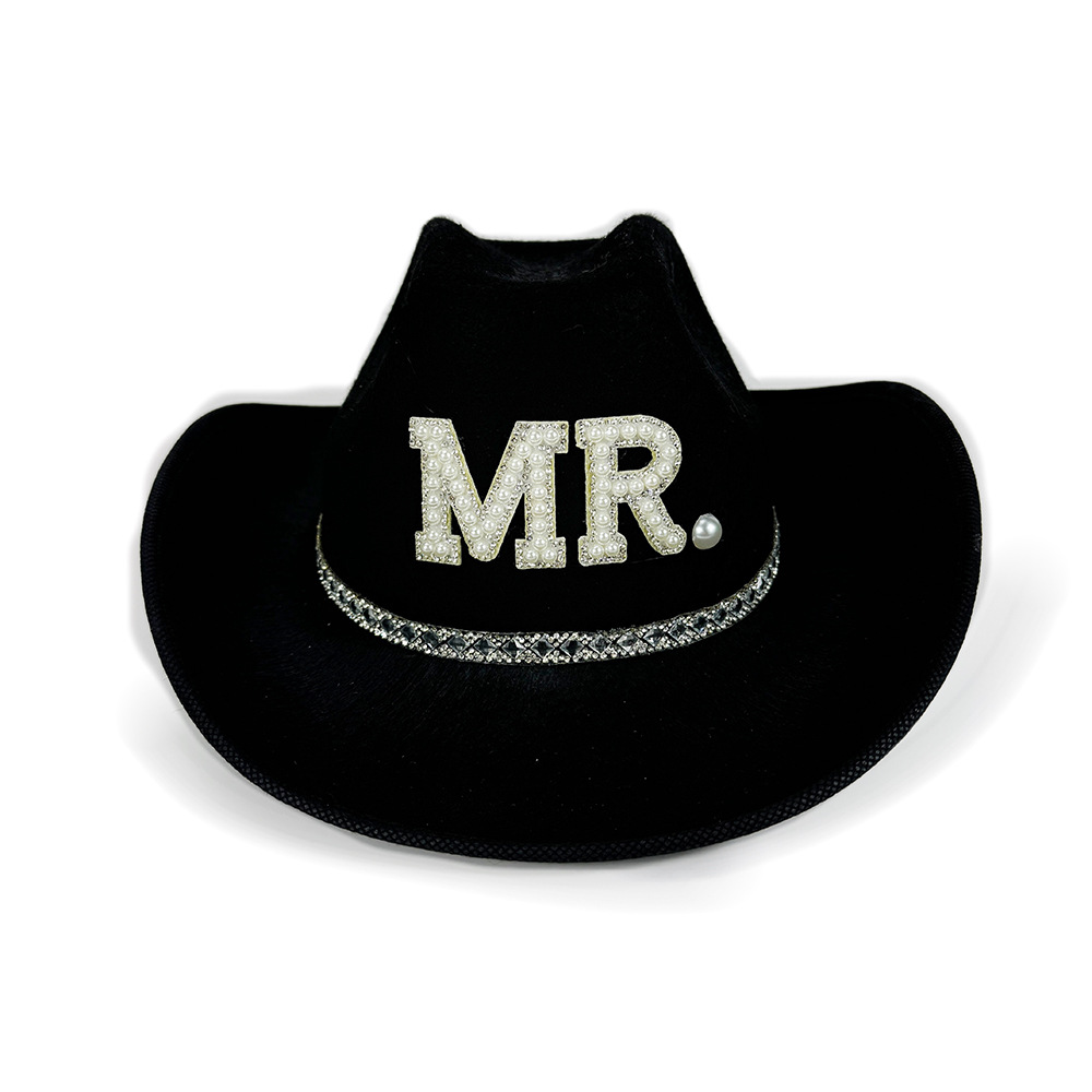 スポットブラックミスターレターMRダイヤモンドカウボーイハットウエスタンカウボーイハット花嫁レディースホワイトベールカウボーイハット