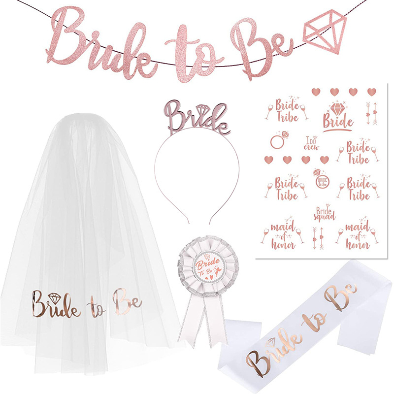 スポットバチェラーパーティー BRIDE TO BE セット ローズゴールド ショルダーストラップ フラッグ ベール バッジ ヘッドバンド セット