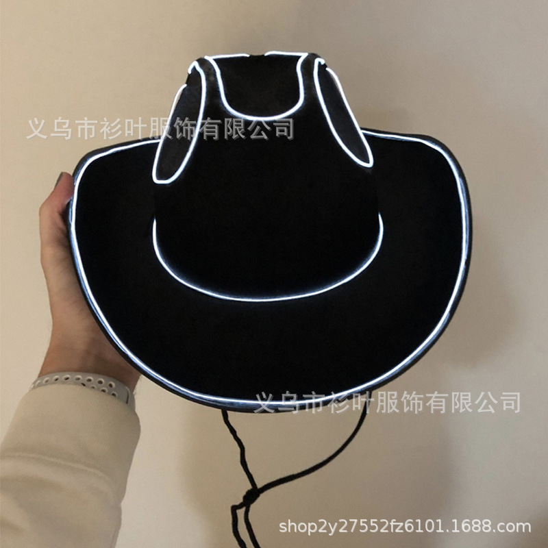 新しいハロウィンコールドライトブラックカウボーイハットコールドライトディックカウボーイハットLED発光ラインカウボーイハット