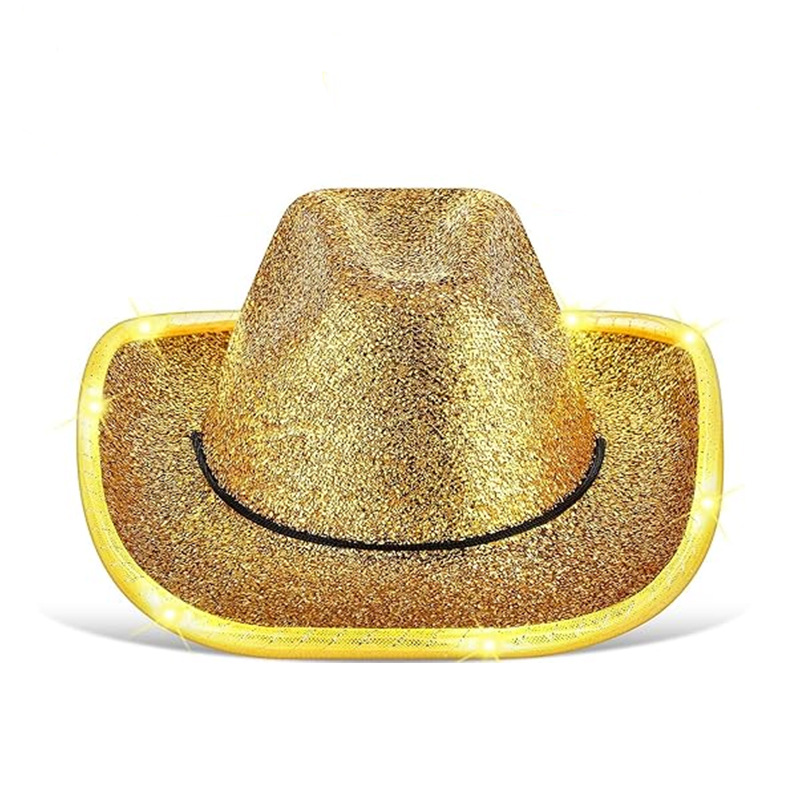 ライト付きゴールドグリッターカウボーイハット ウエスタンカウボーイフェザーリボンライト付きカウボーイハット 複合EVAグリッターカウボーイハット